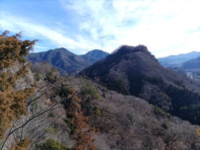*少し尖った山が奥多摩三山の大岳山と左側に平らな山が御前山を