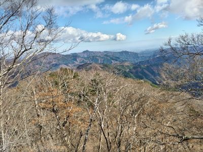 *少し尖った山が奥多摩三山の大岳山と左側に平らな山が御前山を
