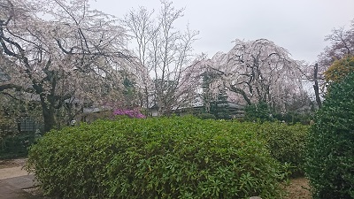 中院の枝垂桜--淡いピンク色なので写真写りはイマイチですが